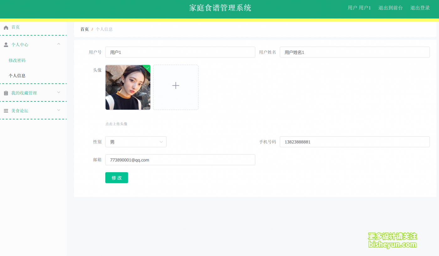 基于java(ssm)家庭美食食谱管理系统----用户个人中心