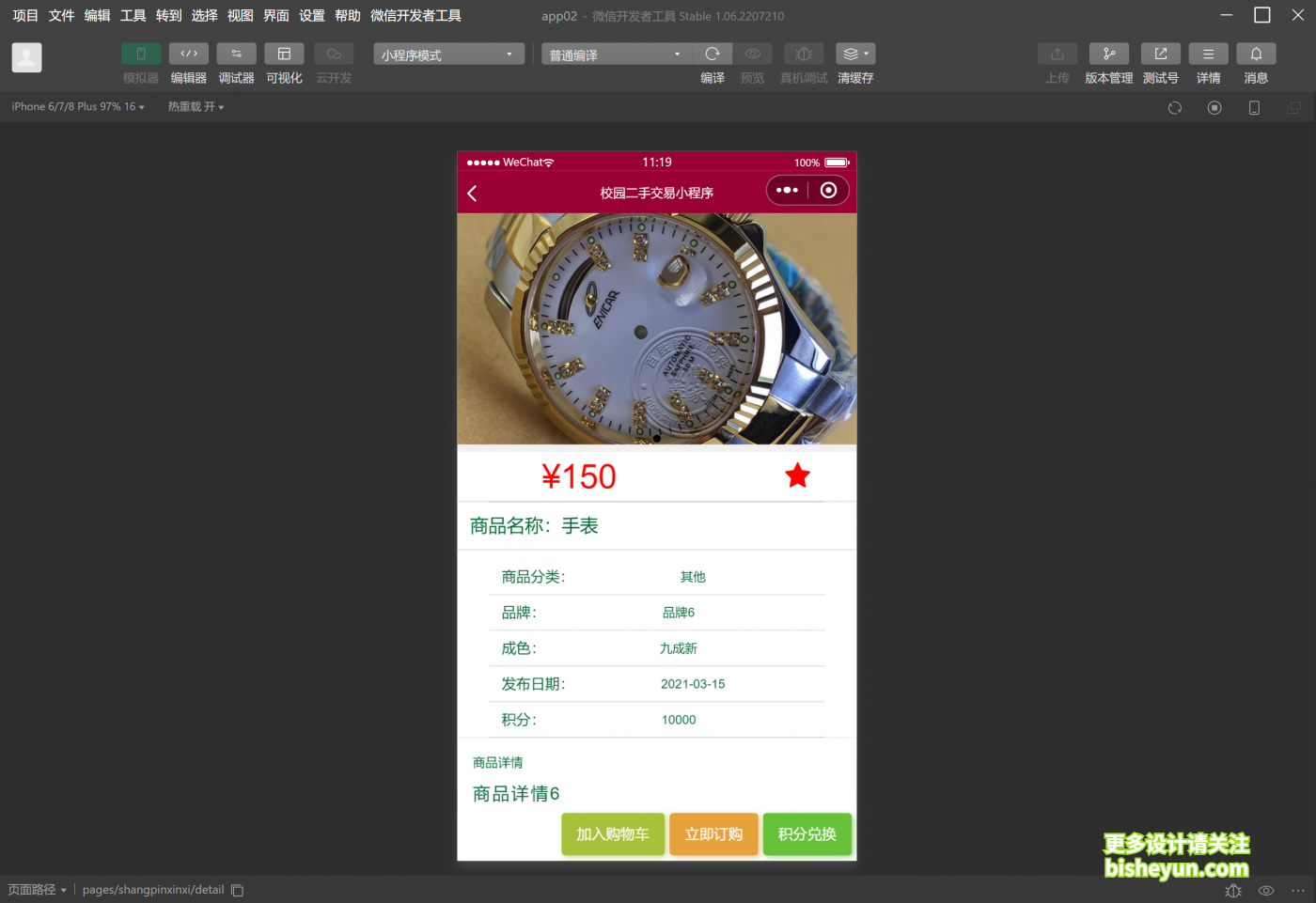 4.学生可以对二手商品加入购物车,或者立即购买,也可以用积分兑换