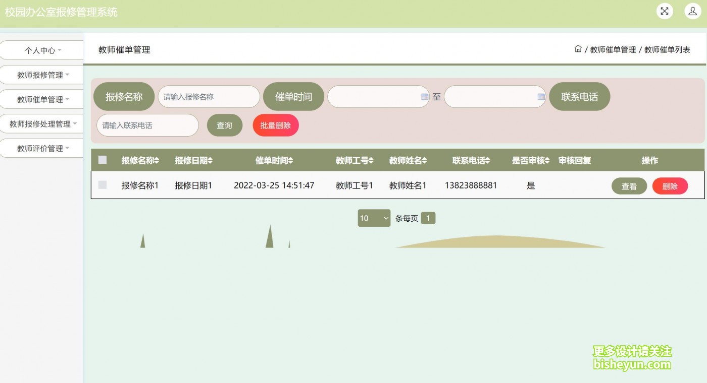 4.教师对报修申请进行管理,在线催单,查询,删除申请