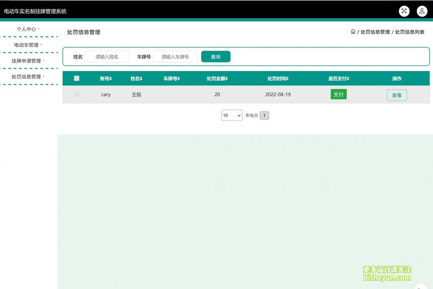 基于java电动车实名挂牌管理系统----处罚信息管理