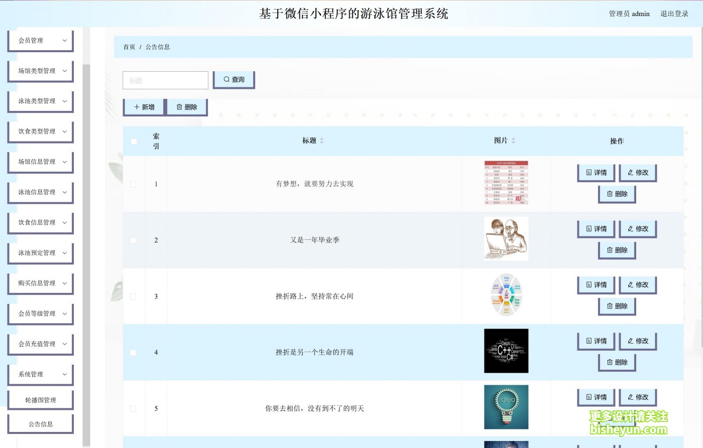基于微信小程序游泳馆管理系统-----公告信息管理