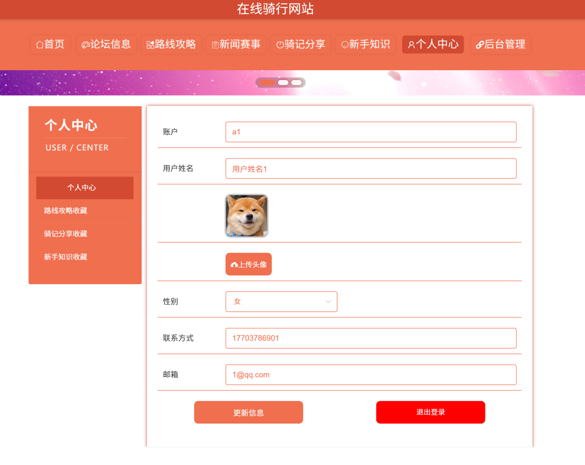 1.首页:展示骑行网站的基本信息、热门路线和最新骑记等内容。