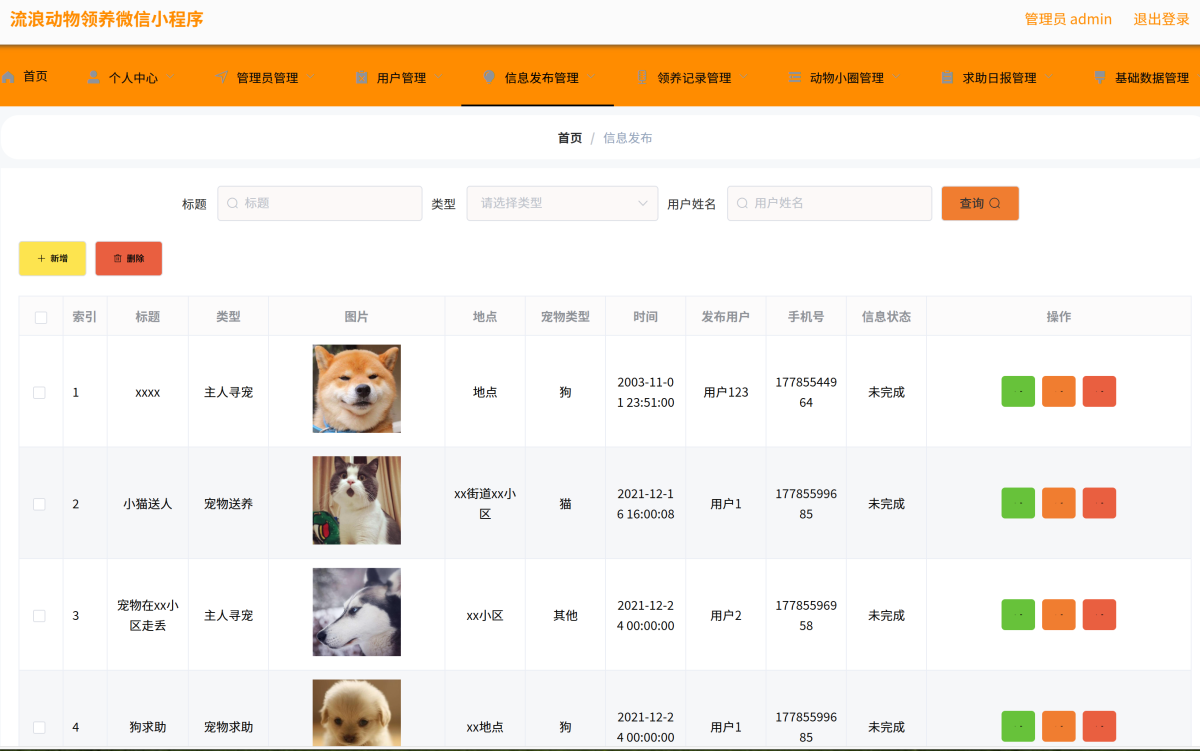 管理员管理动物小圈的内容,支持审核、编辑、删除用户发布的帖子。