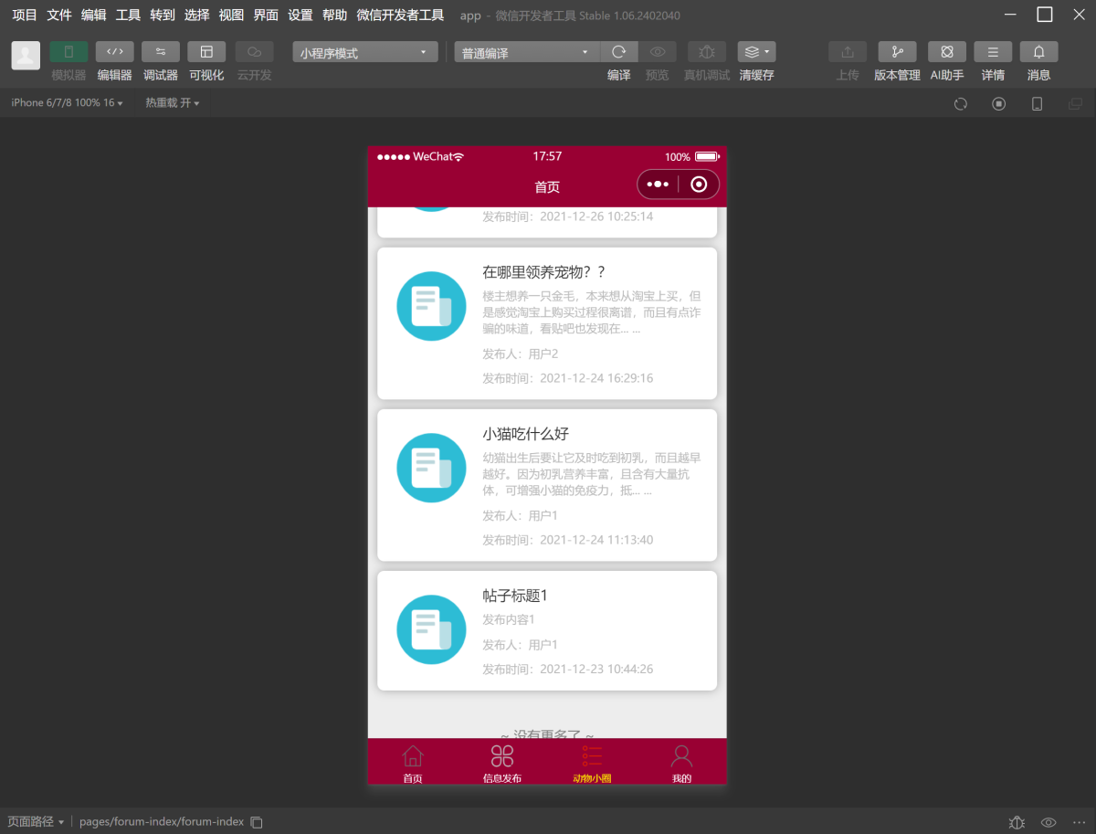 查看用户在动物小圈发布的帖子,支持编辑和删除自己的发帖内容。