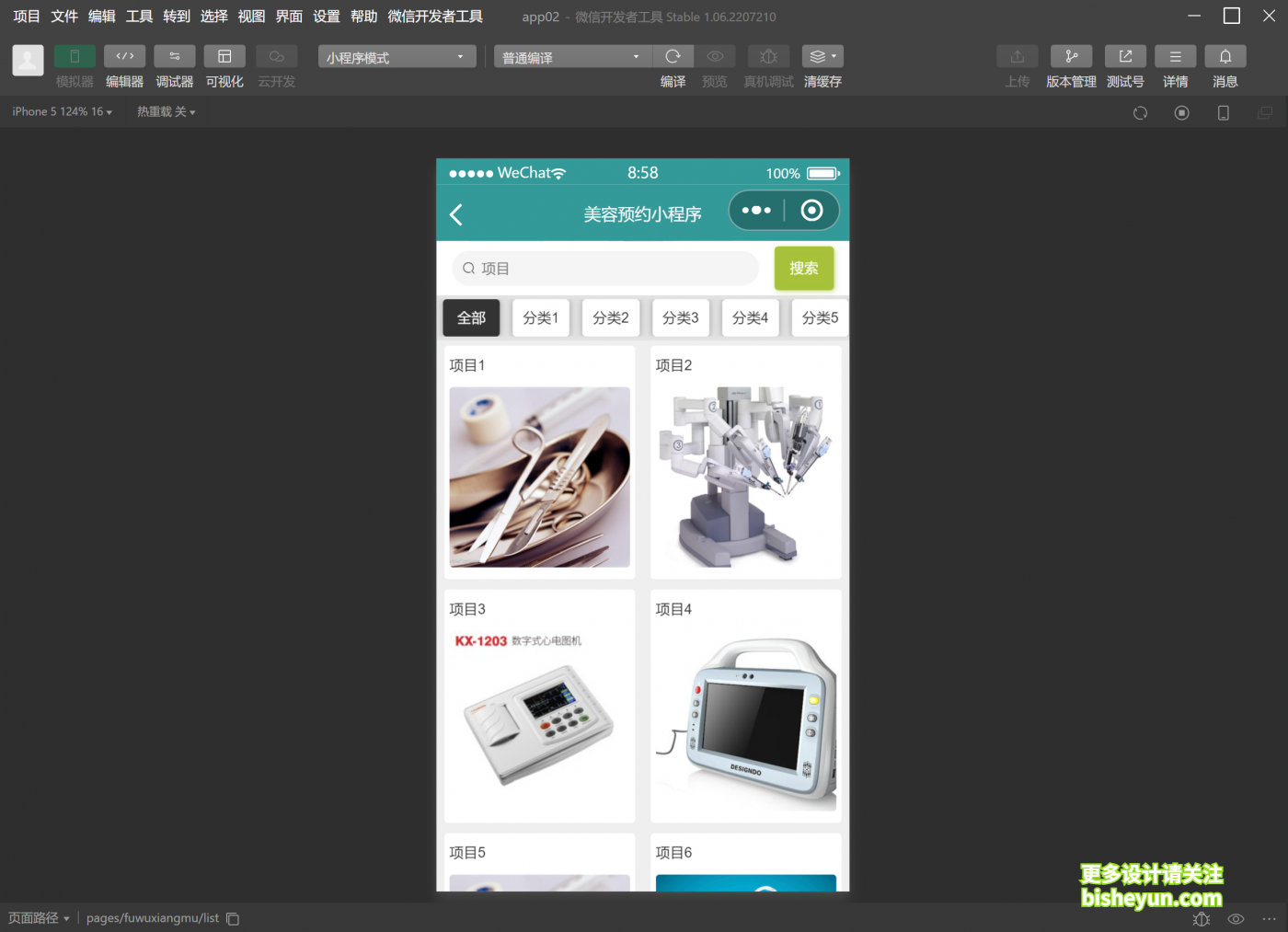 基于微信小程序美容预约管理系统----用户微信小程序查看服务项目