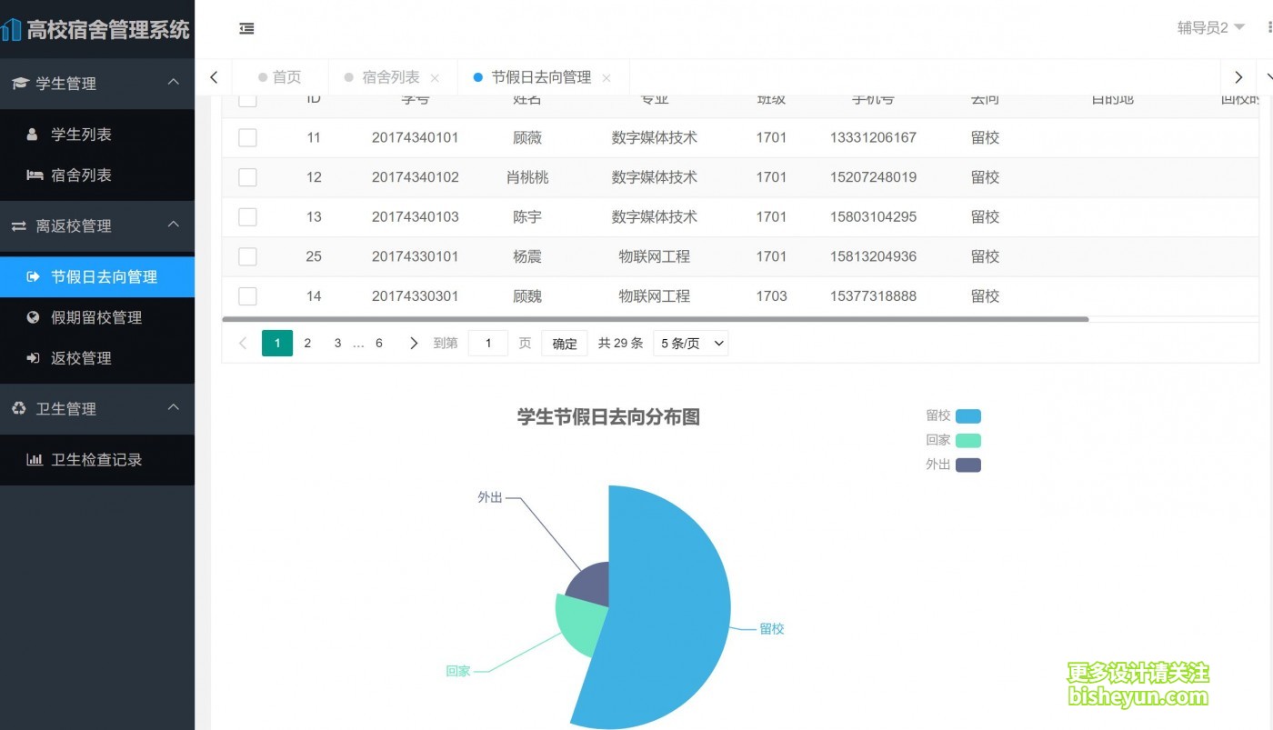 基于java(springboot)高校宿舍管理系统----辅导员查看节假日去向