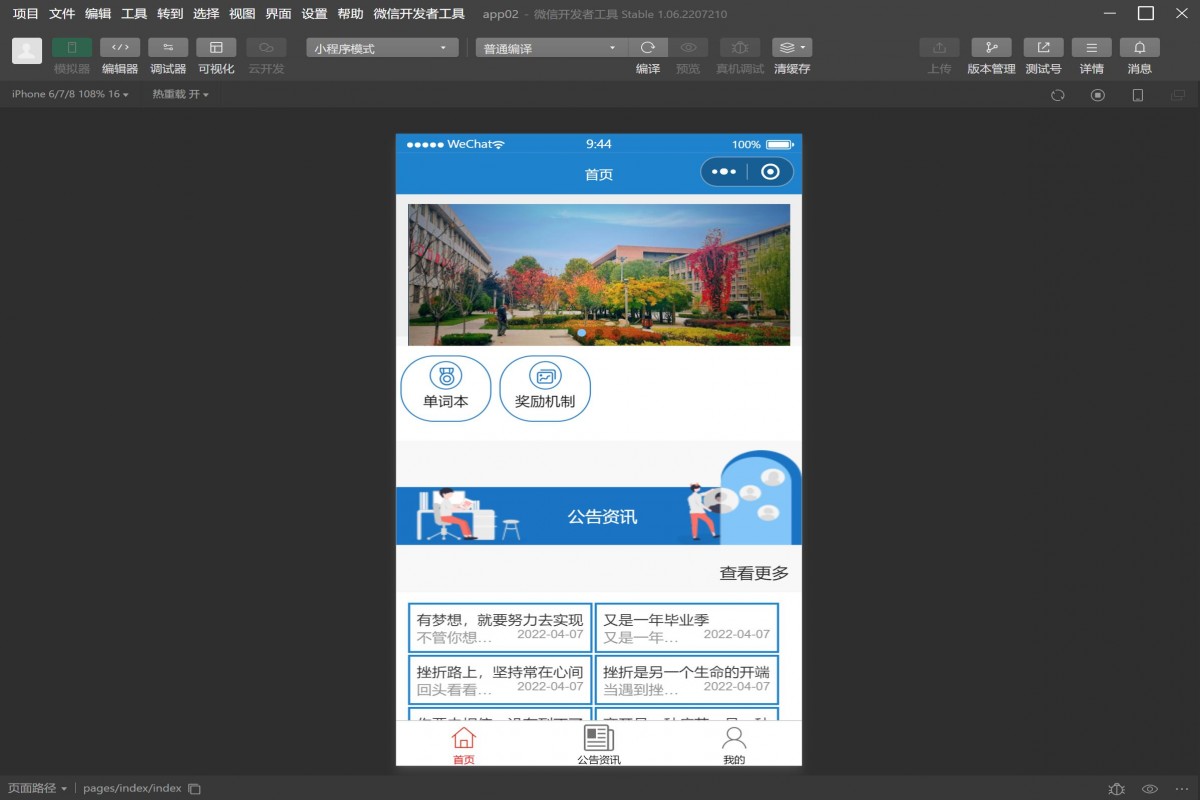 基于微信小程序英语学习激励系统----用户查看小程序首页