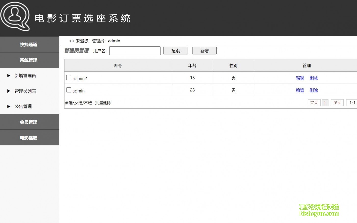 基于php电影院选座管理系统----管理员对系统用户信息管理