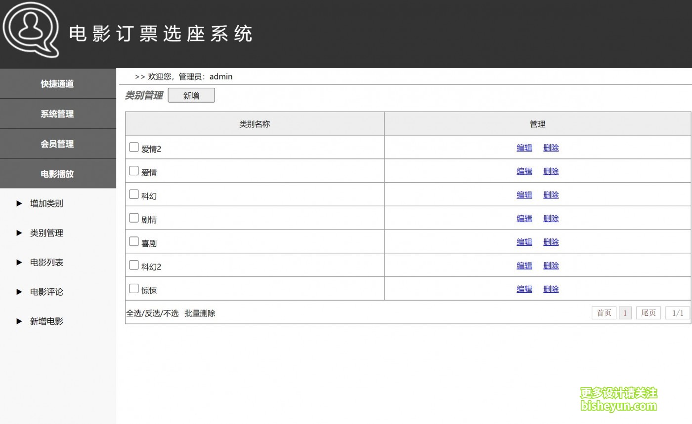 6.电影类别管理:管理员对电影类别信息进行添加, 修改,删除,查询