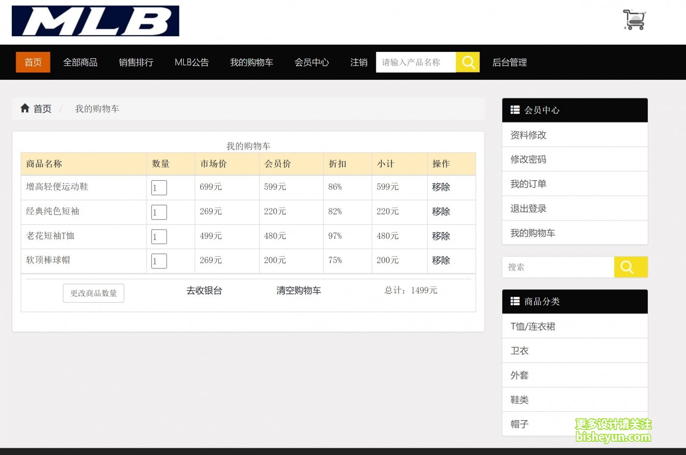 基于php潮流服装商城管理系统----用户查看我的购物车