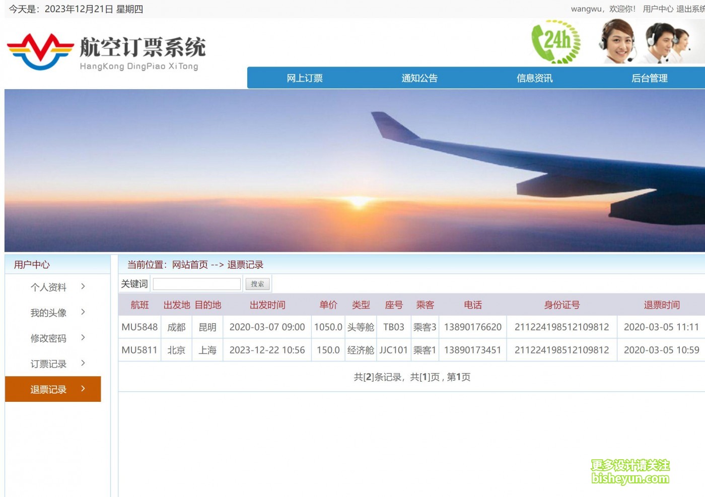 基于java(ssm)航空售票管理系统----用户退票信息查看