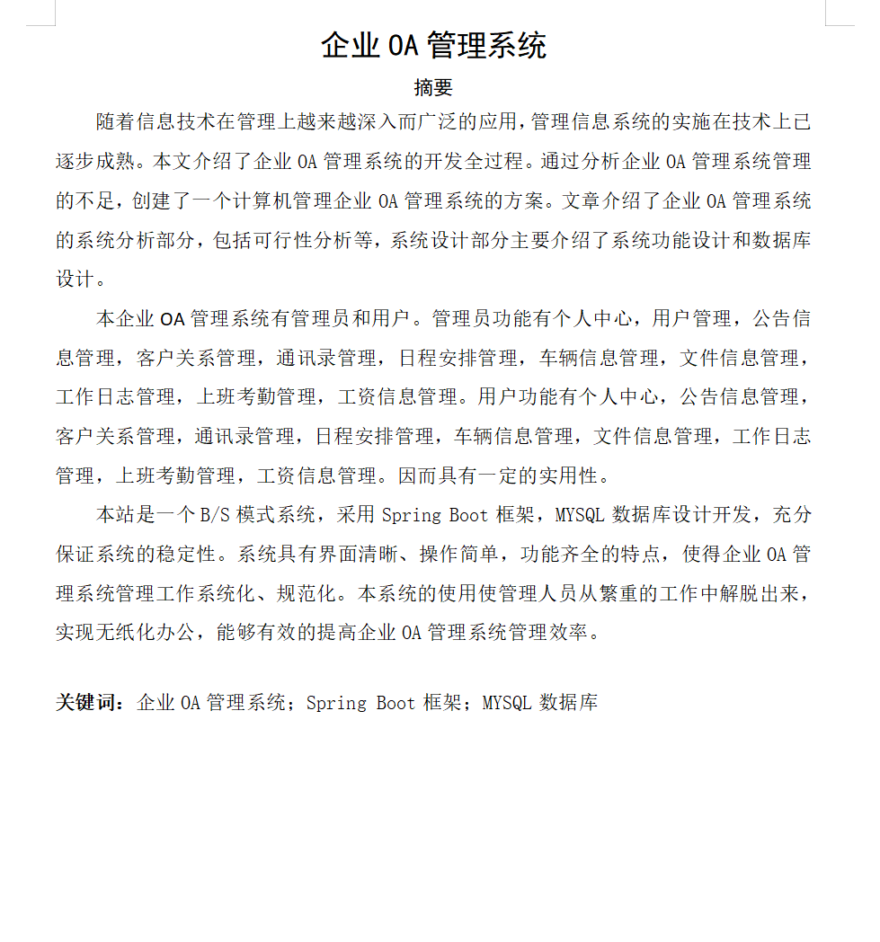 基于java(springboot) 框架实现的企业 oa 管理系统