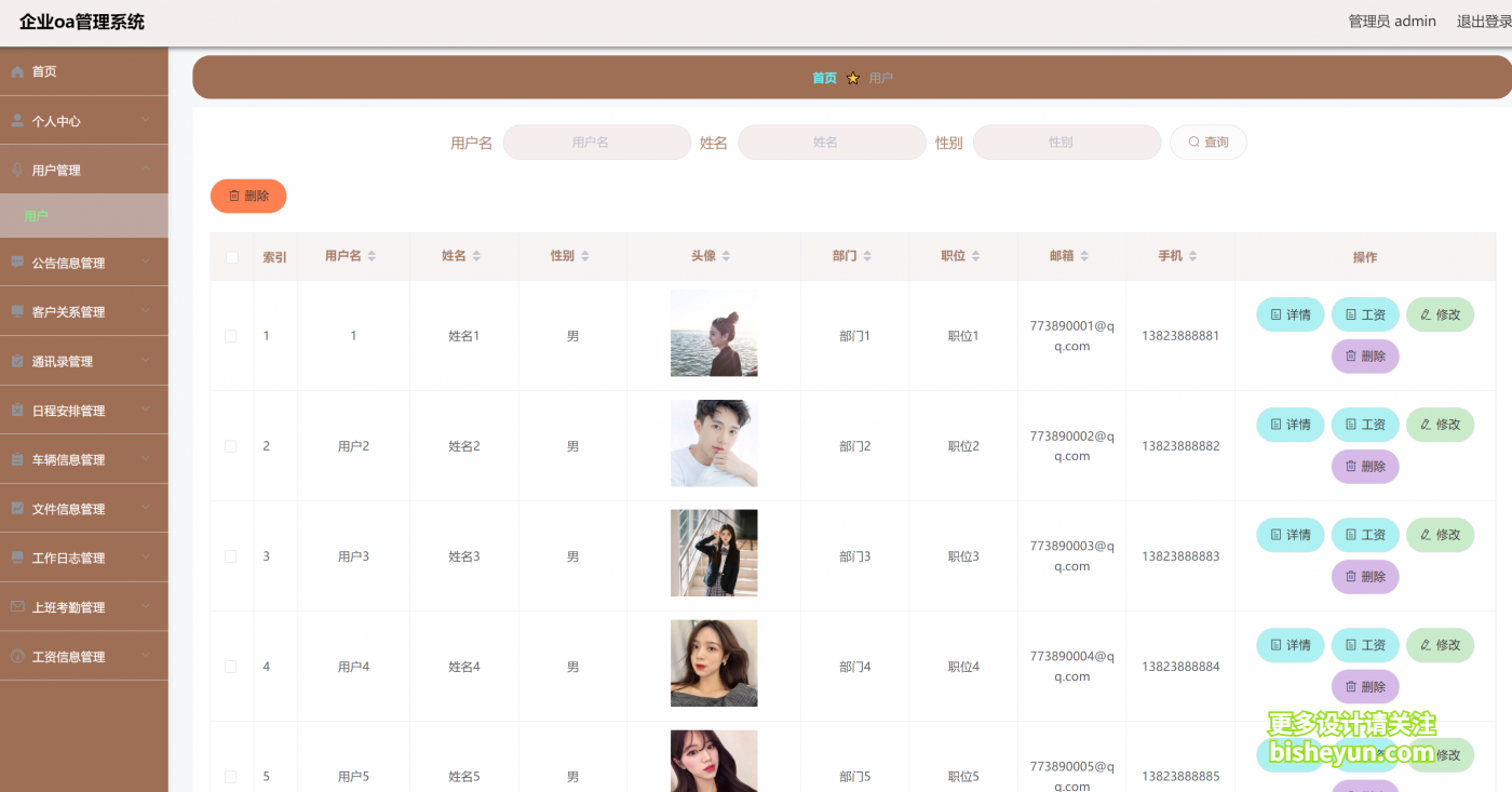 基于java(springboot) 框架实现的企业 oa 管理系统----用户信息管理
