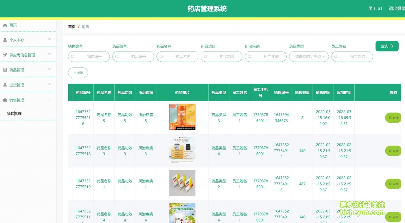 5.销售管理:管理药品销售信息,包括查看销售记录、录入销售信息等操作。