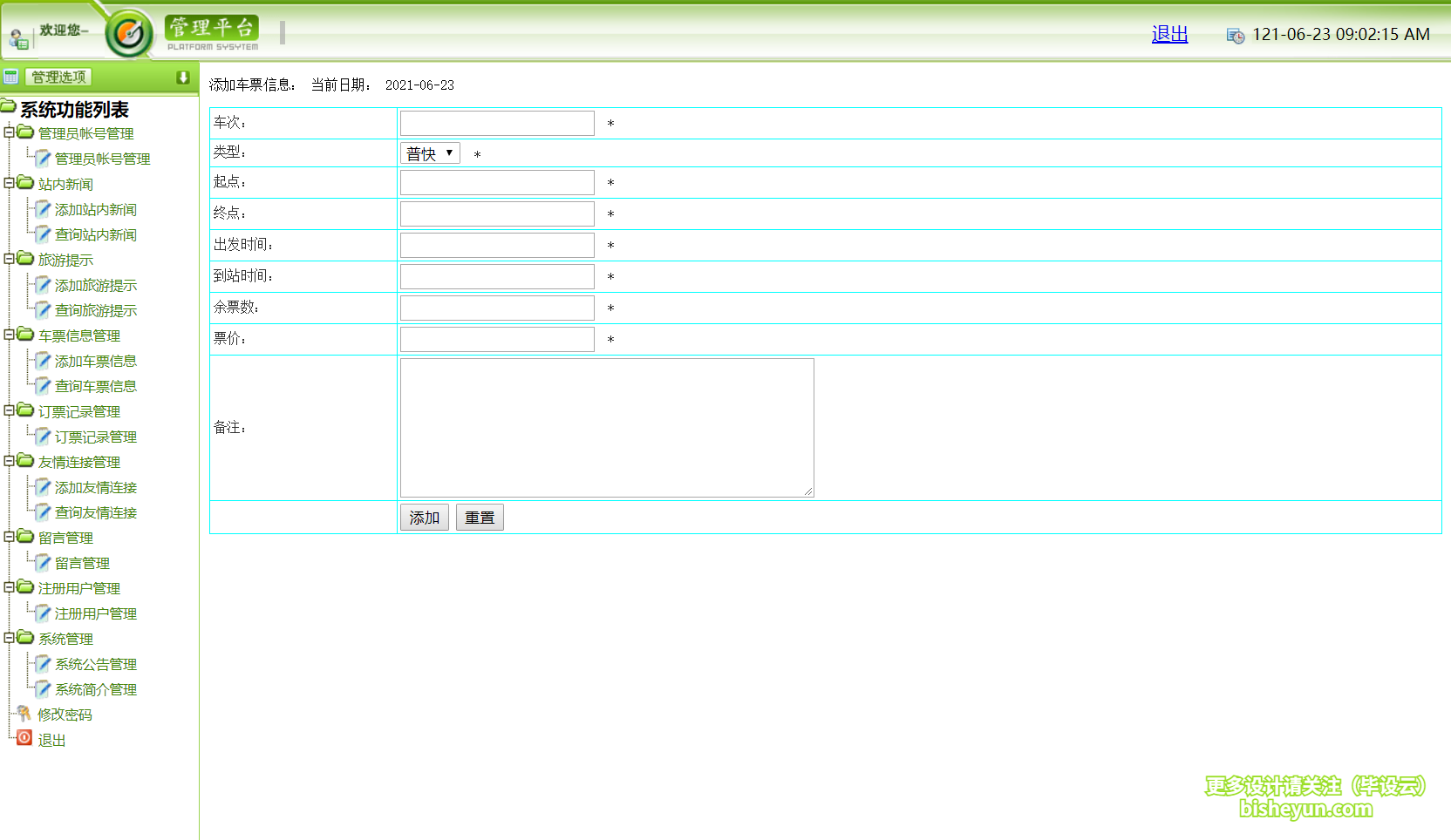 毕设云-基于php的火车票预定管理系统-站内新闻