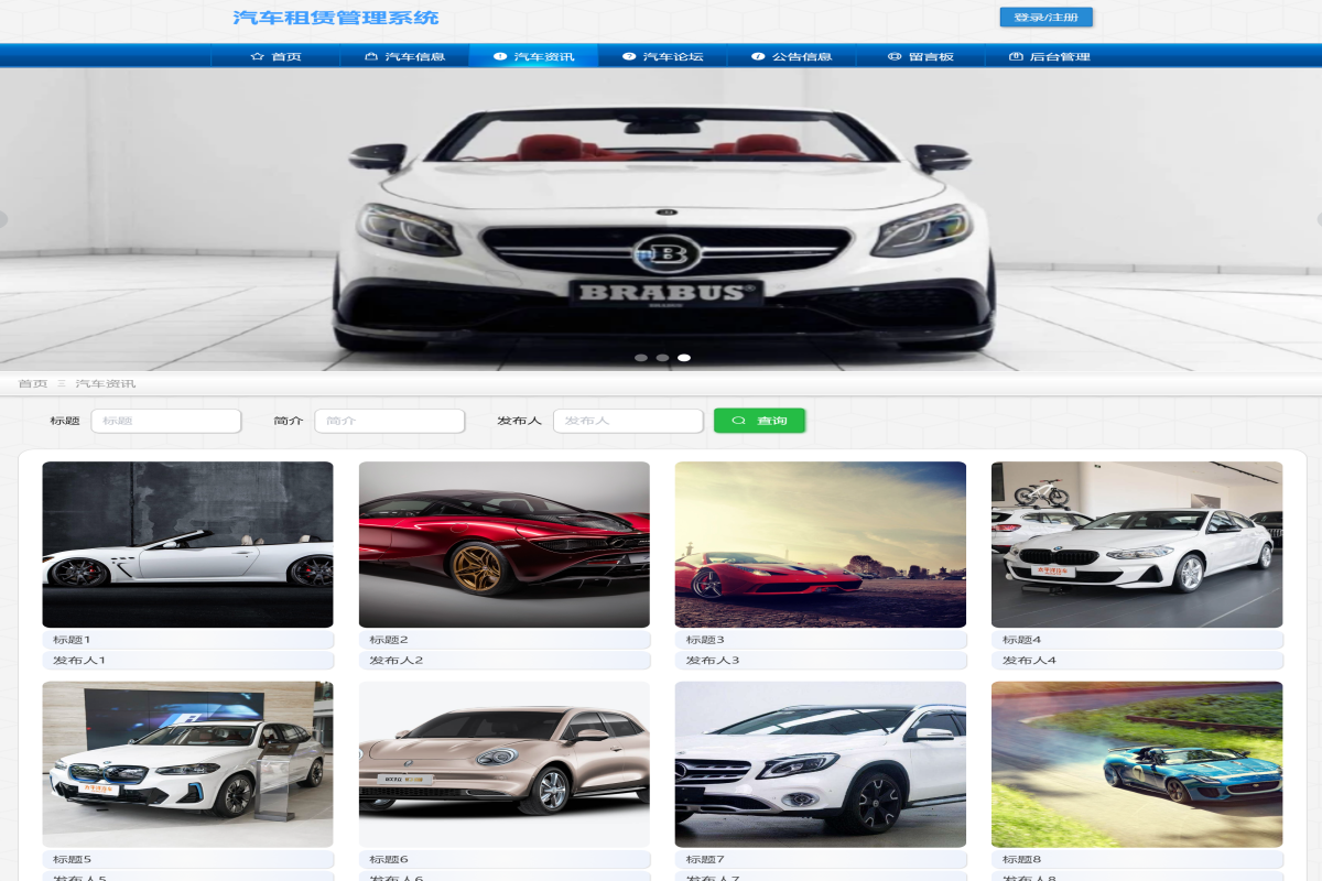 汽车信息:展示可租赁的汽车的品牌、型号、价格等信息,用户可以通过筛选条件找到适合自己的汽车.