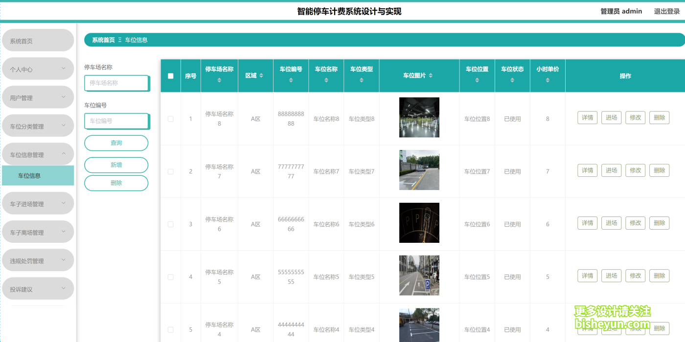 4.车位信息管理:管理员可以管理车位的信息,包括添加、编辑和删除车位。